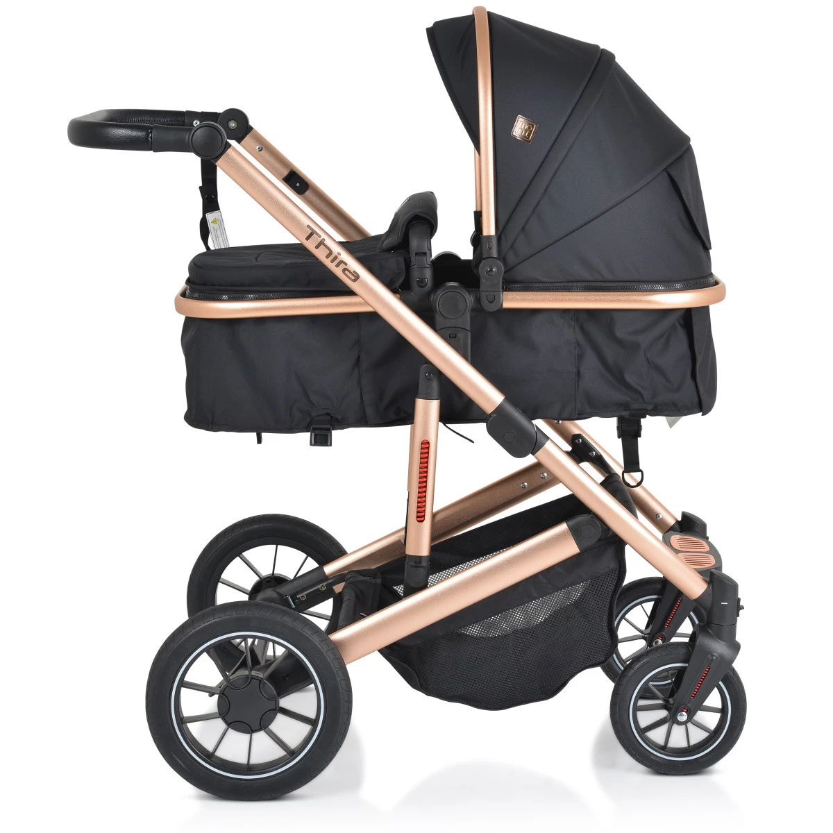 Met de stijlvolle Thira 3-in-1 Kinderwagen van Cangaroo haal je een fijne kinderwagen voor jarenlang gebruik in huis! Het is een ideale wagen zowel voor ouder als kind en is te gebruiken tot dat je kindje wel 4 jaar oud is. Daarnaast heeft de wagen een mooi design met een zeer luxe uitstraling dankzij het roségouden aluminium frame en PU lederen details!