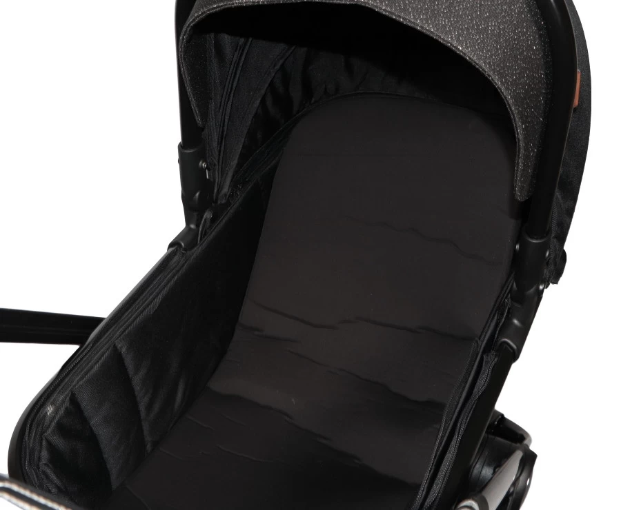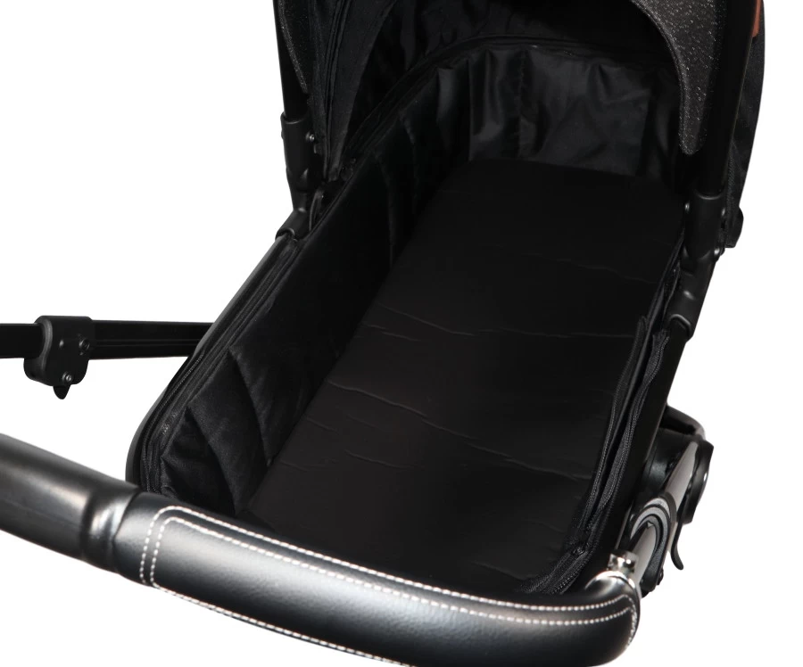 Met de Ding Fenix kinderwagen weet je zeker dat je van alle gemakken voorzien bent tijdens een wandeling. Deze moderne kinderwagen heeft een luxe uitstraling door het shiny zwarte aluminium frame in combinatie met de eco-leren details.