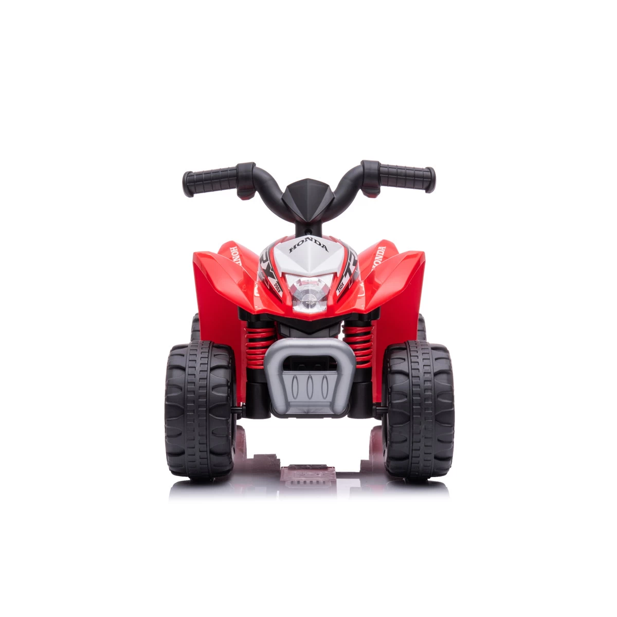 Op deze stoere Honda elektrische quad van Eco Toys kan jouw kleine heerlijk rondscheuren! Dit is net een echte Honda quad. Je kindje geeft gas met het gaspedaal en de quad is voorzien van een claxon.Â