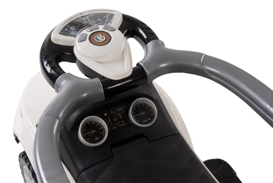 De loopauto is in verschillende fases door je kindje te gebruiken. In eerste instantie kan je je kleintje helpen, door hem of haar rond te duwen met behulp van de duwstang. Je kindje zit comfortabel tussen 2 armleuningen en heeft een rugsteun en voetsteunen. De volgende fase is dat je kindje zelf begint te lopen, de duwstang en voetsteunen kunnen dan verwijderd worden. De laatste stap is dat je kindje helemaal zelfstandig kan rondrijden op deze auto, zonder armleuningen.Â