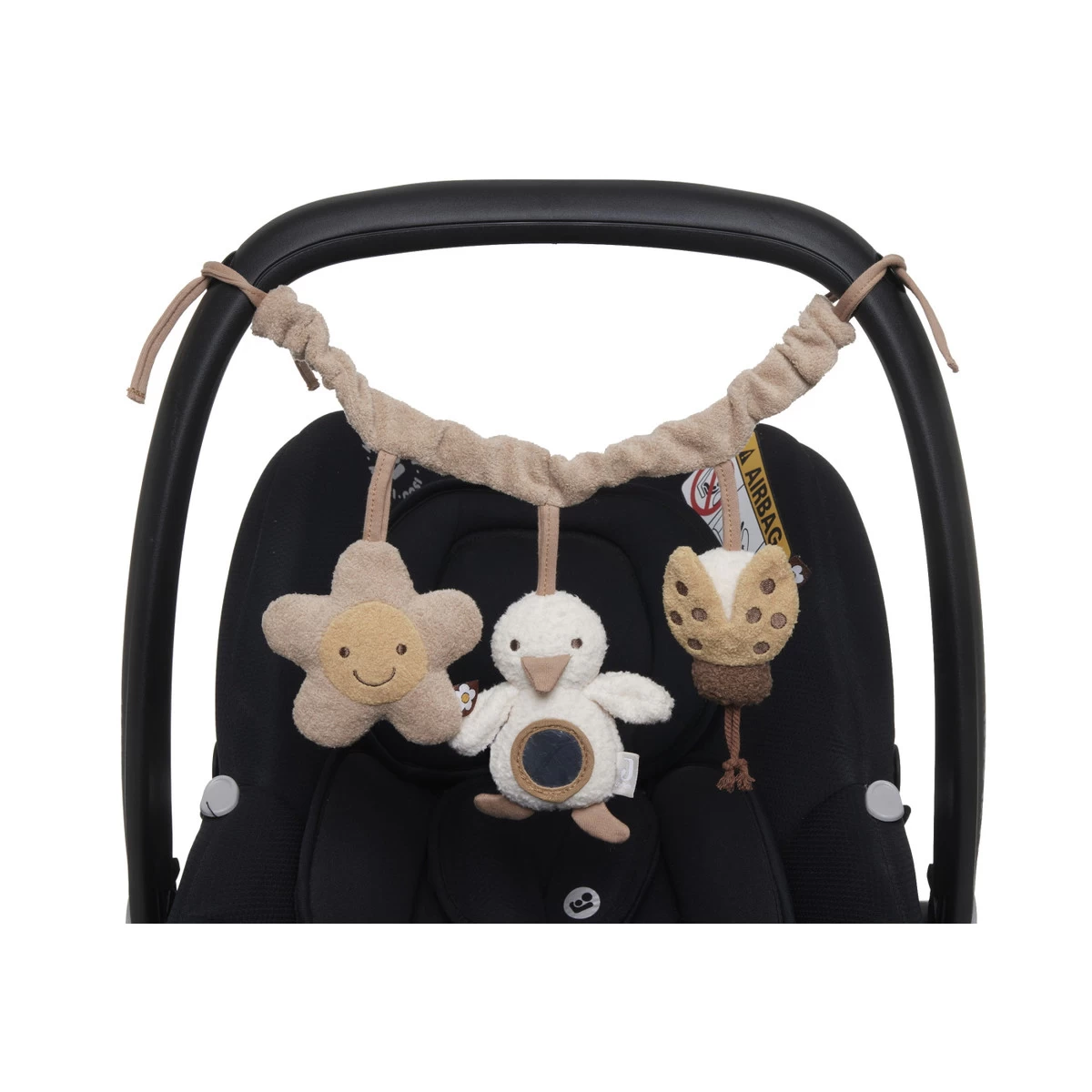 Met deze vrolijke Spring Garden Bloom wagenspanner van Jollein hoeft jouw kleintje zich niet te vervelen in het autostoeltje of in de kinderwagen! Ook maak je jouw kinderwagen extra fleurig met deze ketting. Je kindje kan lekker naar de verschillende knuffeltjes grijpen wat goed is voor de ontwikkeling van de hand-oog coördinatie.